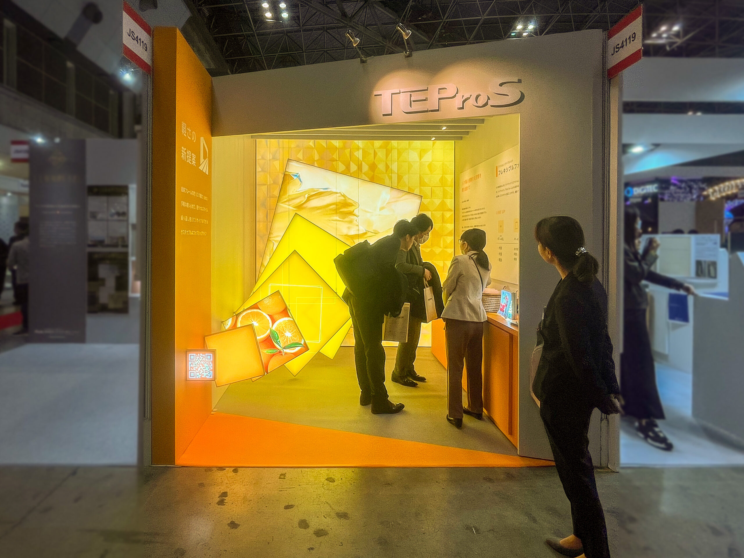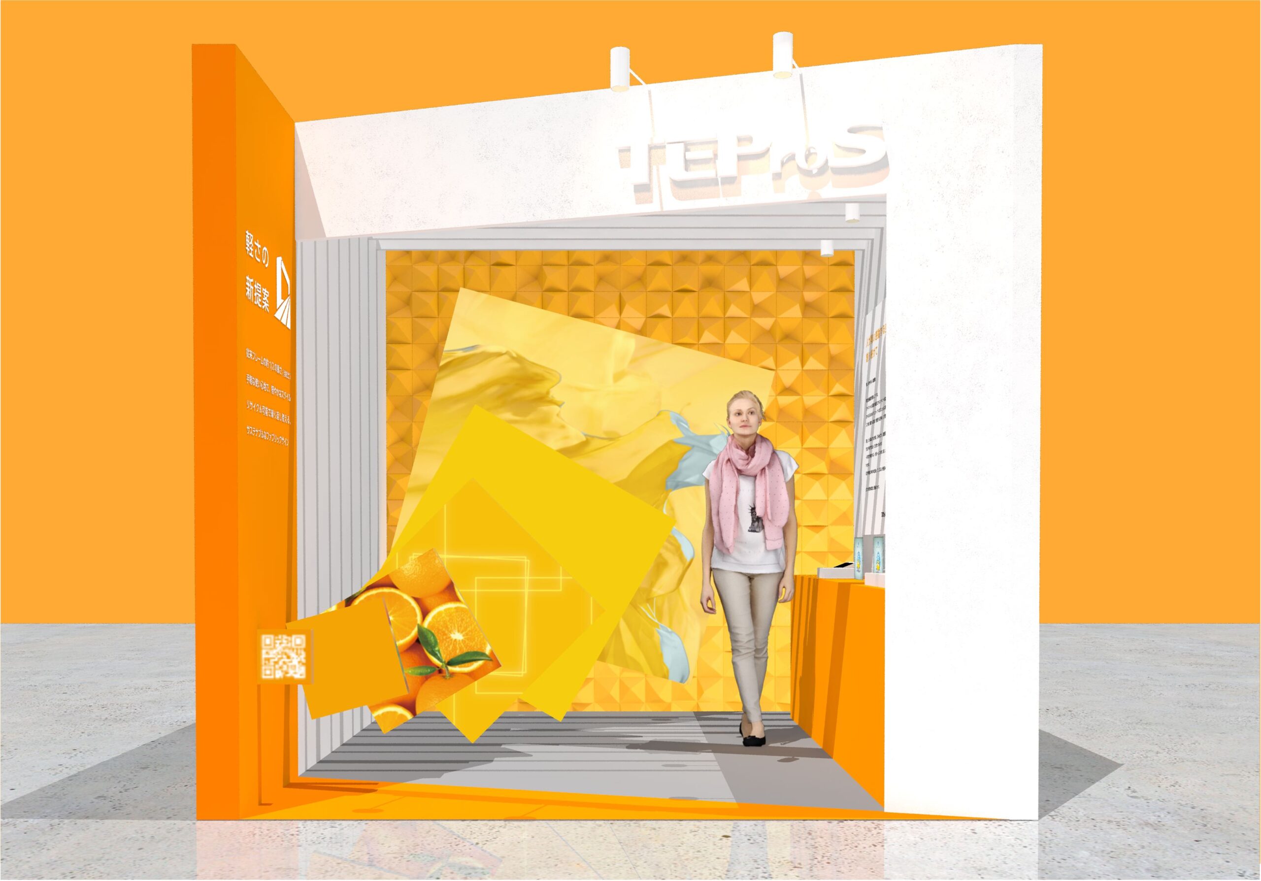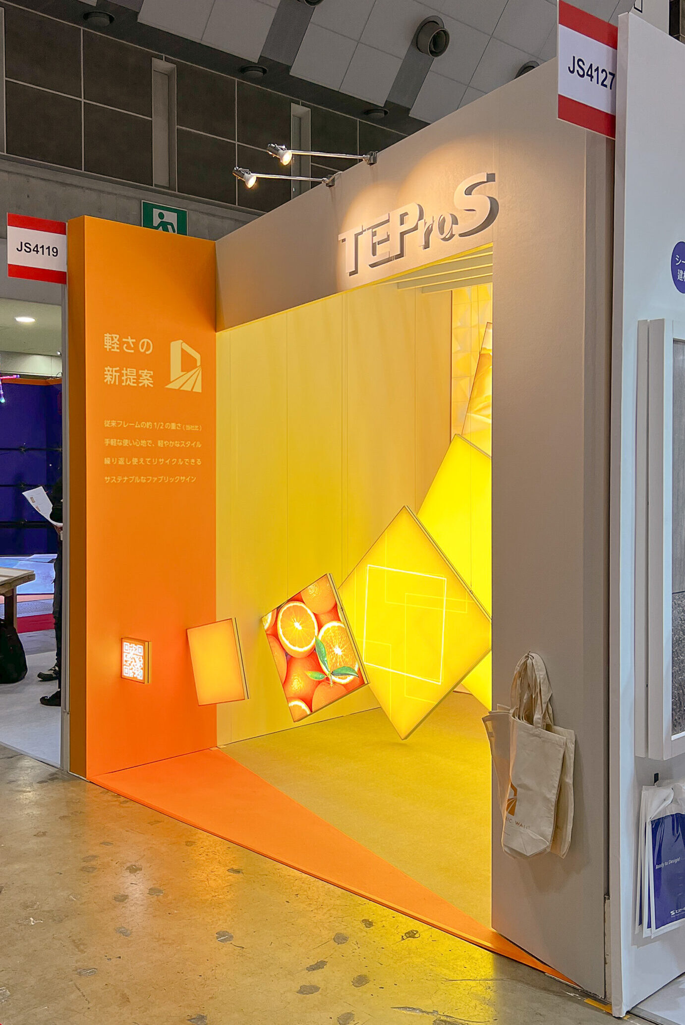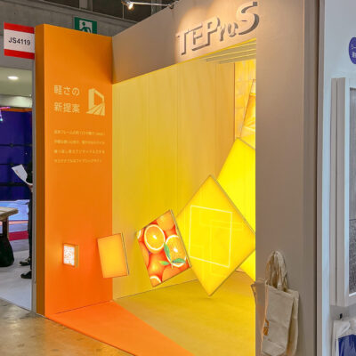 弊社のオリジナルテンションファブリック「フレキシブル ファブリック ウォール®︎」に、薄型内照式フレーム「FF40L」が新たに登場しました。ブースでは、この「FF40L」最大の特長である『軽さ』を際立たせながら、「フレキシブル ファブリック ウォール®︎」の鮮明さを、鮮やかなビタミンカラーの輝きで表現します。