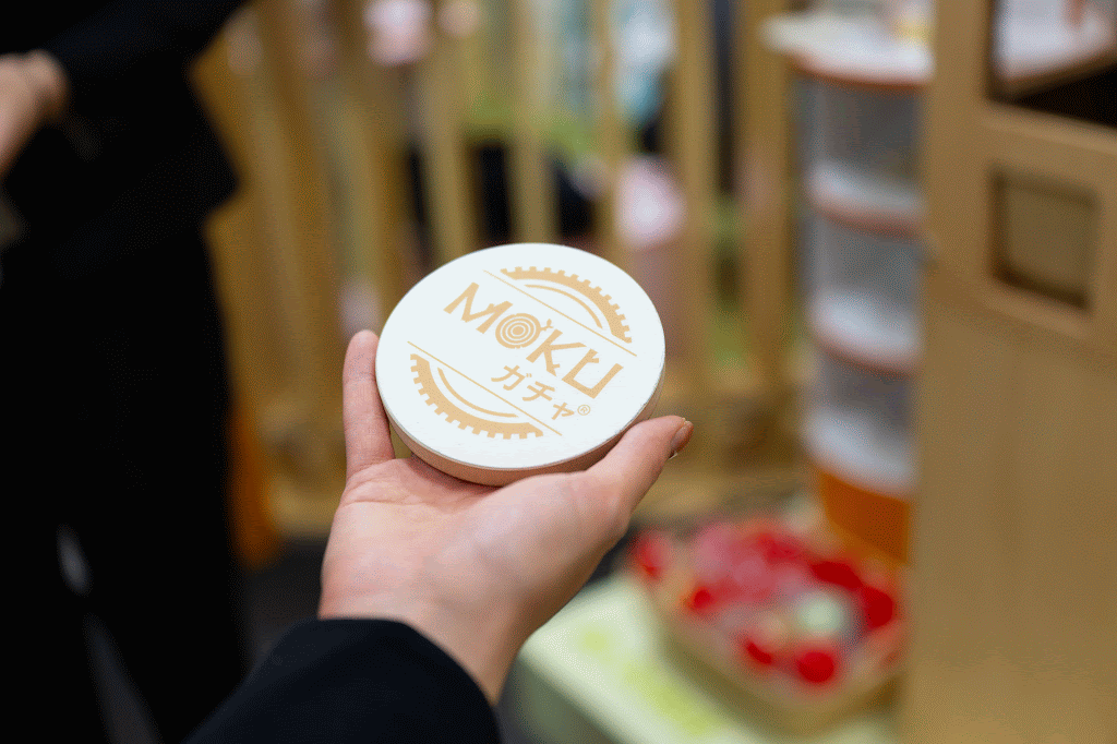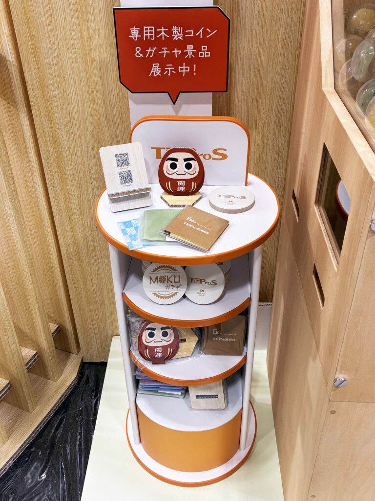 高さ約180cmの木製ガチャマシン「MOKUガチャ」を設置しました。
