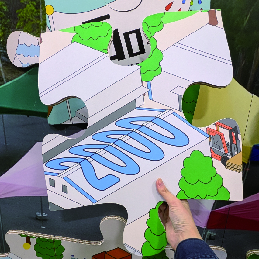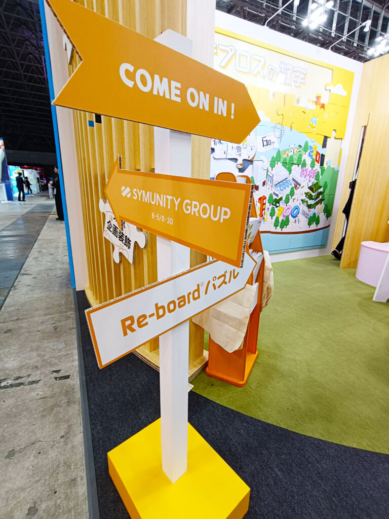 イベントの楽しげな雰囲気を表現したイラストに、弊社やRe-boardにまつわる”数字“を散りばめた、Re-board製の大型壁面パズルを展示しました。