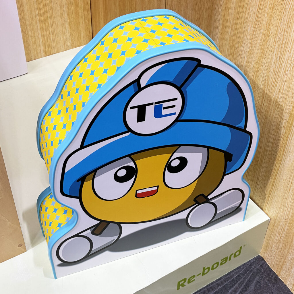 100%リサイクル可能なRe-boardを用い、企画・デザイン・設計・印刷・加工・施工までをすべて自社で一貫して行いました。