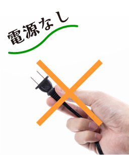 電気を使用しないため、場所や配線の心配なくすっきりとおさまります。メンテナンスも簡単です。