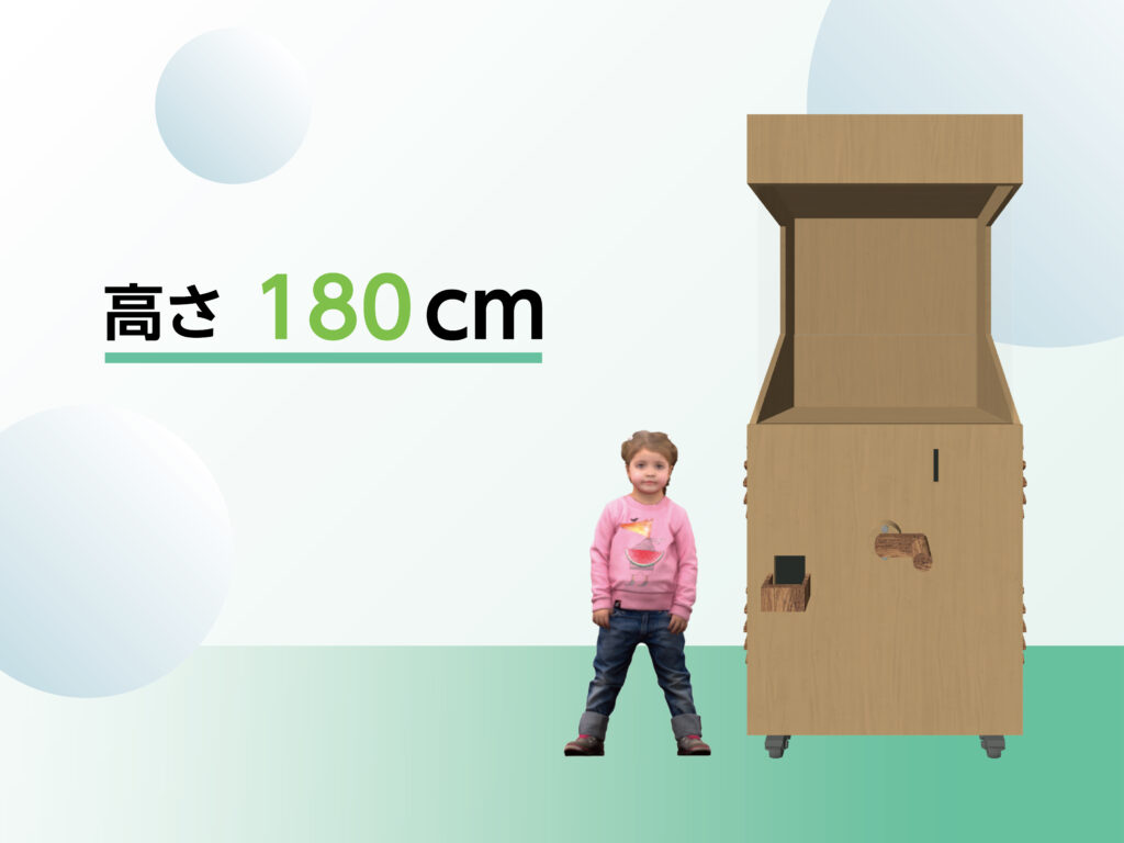 弊社が得意とする木工制作技術で製作したオリジナルカプセルマシーンです。内部機構まで木製にこだわり、回した時に木独特の重みが感じられるように設計しました。専用木製コインや上部看板など、オリジナルの装飾にも対応しています。