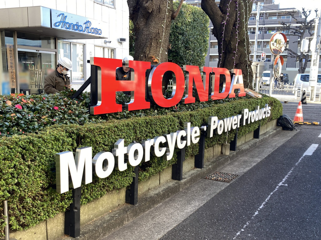 また、アクセントとして「HONDA」と「Motorcycle・Power Products」の立体文字の電飾看板を製作しました。