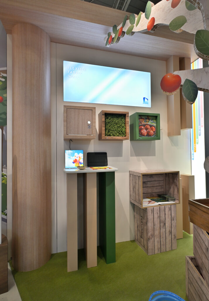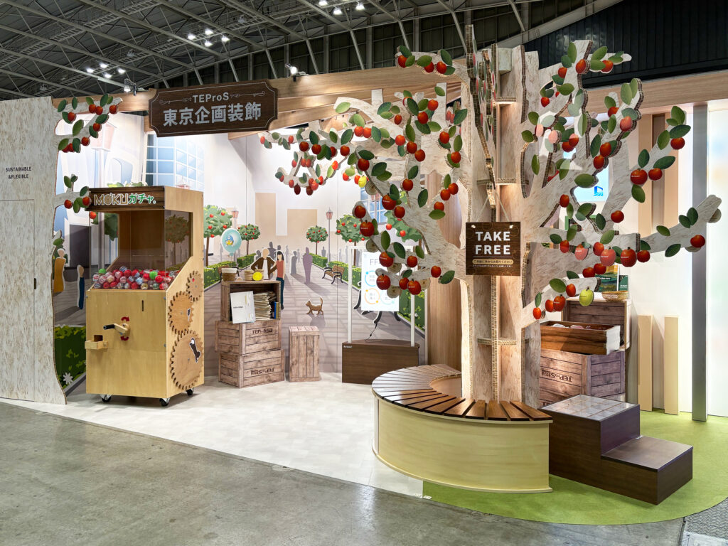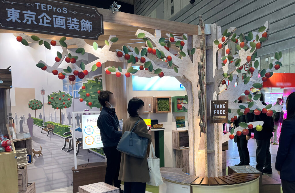 サステナブルで未来志向のイベント・ディスプレイを目指して、様々なメディアをもちいて来場者の方にも楽しい体験をしていただけるブースを製作しました。